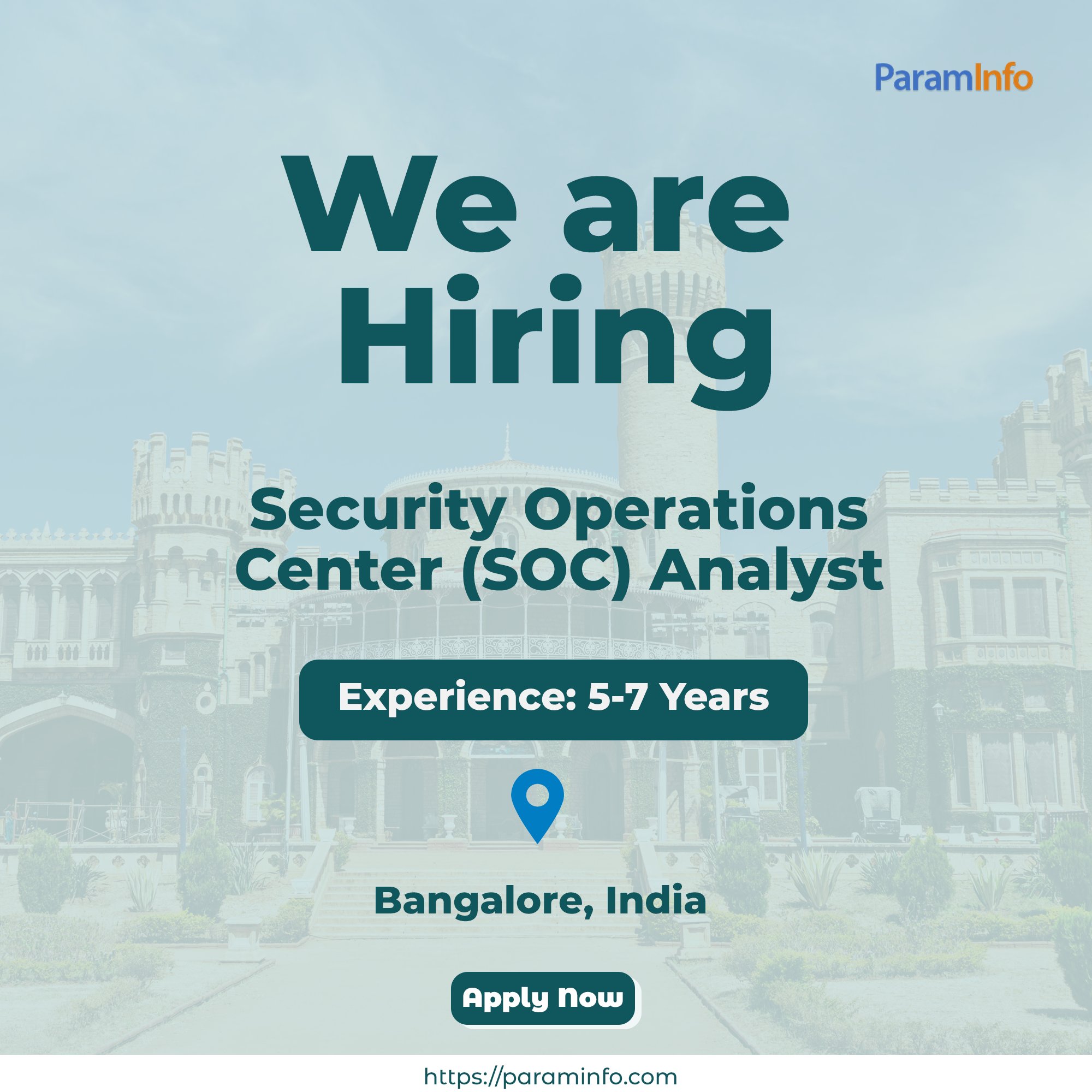 Paraminfo On Twitter ππ¨π ππ’ππ₯π Security Operations Center Soc Analyst ππ©π©π₯π² ππ¨π° Https T Co Udjzebwwft πππ₯ππ«π² 15 00 000 18 00 000 ππ±π©ππ«π’ππ§ππ 5 7 Years ππ¨ππππ’π¨π§ Bangalore India Jobs
